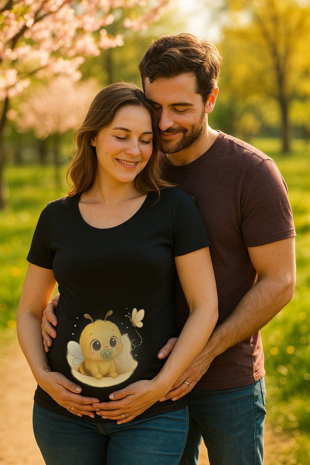 Dieses Umstands-Shirt bringt alles mit, was du brauchst: ein süßes Design, das Herzen höherfliegen lässt – und ein Komfortgefühl, das dich durch jede Etappe der Schwangerschaft begleitet. Die niedliche Biene trifft auf einen verspielten Schmetterling – ein echtes Dream-Team für deinen Babybauch! 🐝🦋