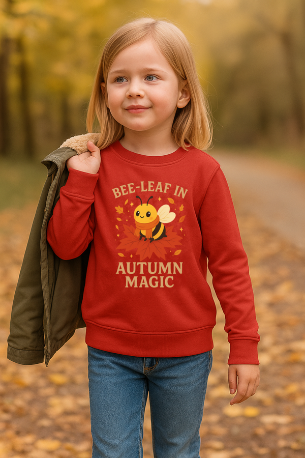 Dieses Design bringt Magie in den Herbst: Die süße Biene mit großen Kulleraugen hockt auf einem strahlend roten Ahornblatt und verzaubert jedes Outfit – kindgerecht, verspielt und absolut liebenswert. Ein Motiv, das sofort für gute Laune sorgt und zum Träumen einlädt. 🍁🐝✨