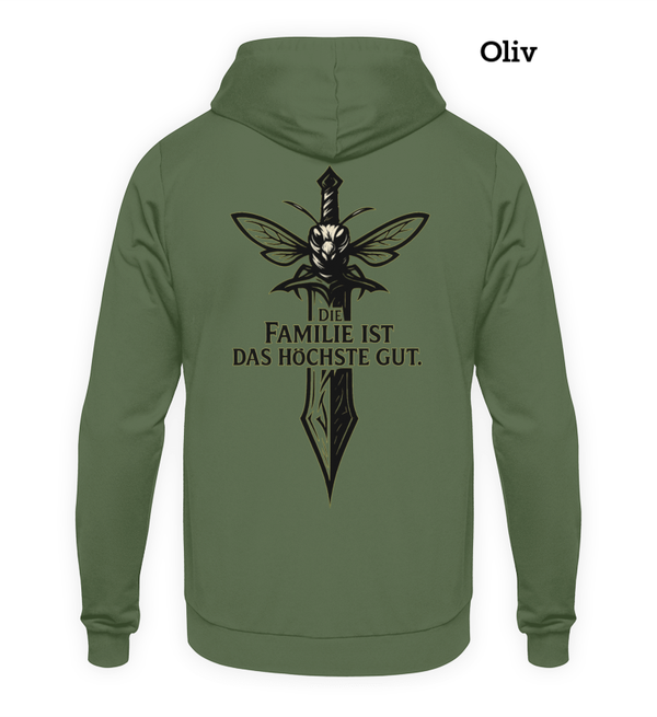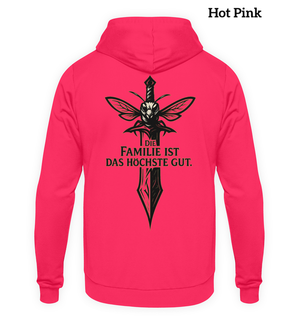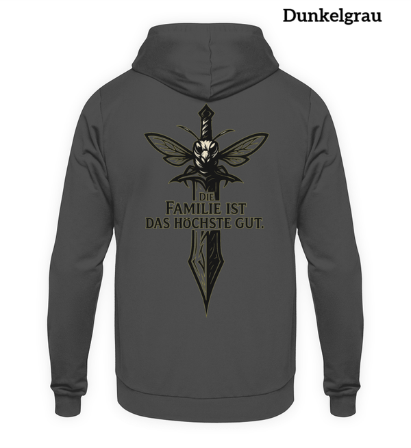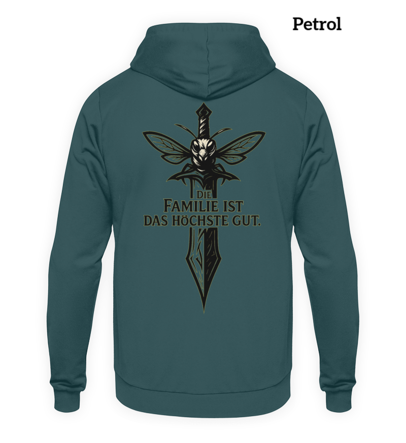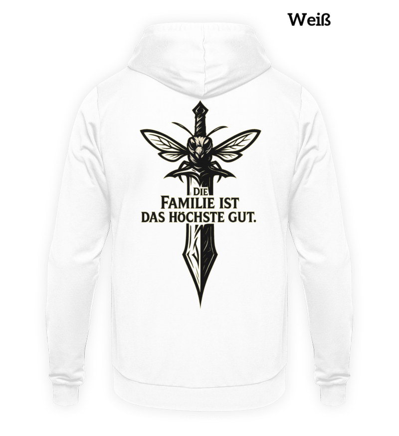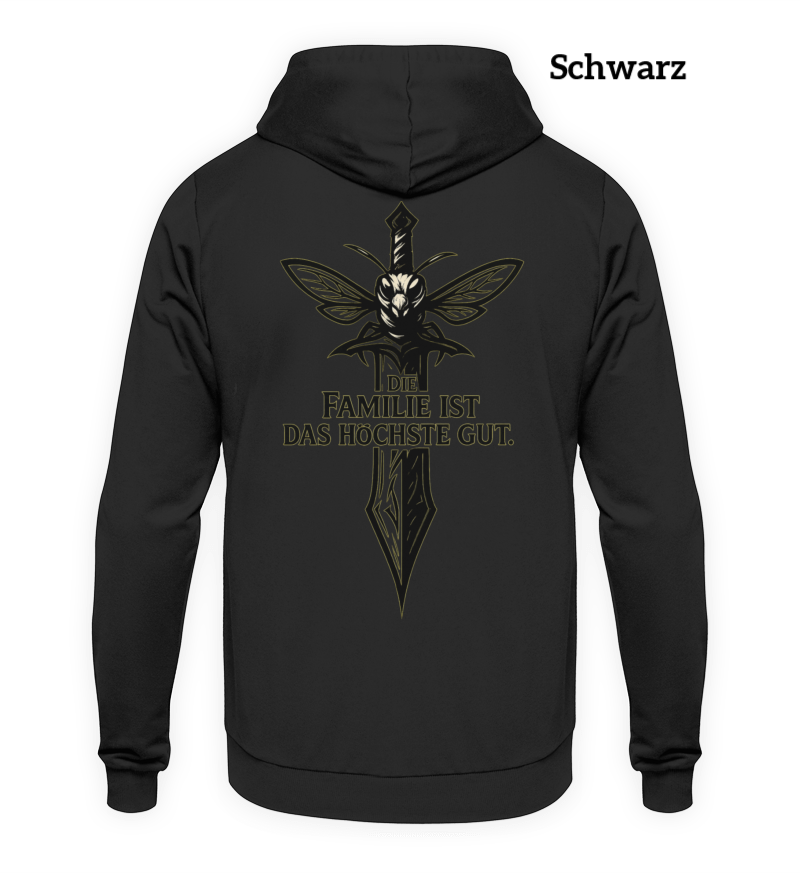 🎨 Design: Schwert welches den Kampfgeist symbolisiert mit Schriftzug "Die Familie ist das höchste Gut" - denn auch im größten Bienenstock, wird Zusammenhalt groß geschrieben.