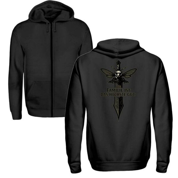 🎨 Design: Schwert welches den Kampfgeist symbolisiert mit Schriftzug "Die Familie ist das höchste Gut" - denn auch im größten Bienenstock, wird Zusammenhalt groß geschrieben.